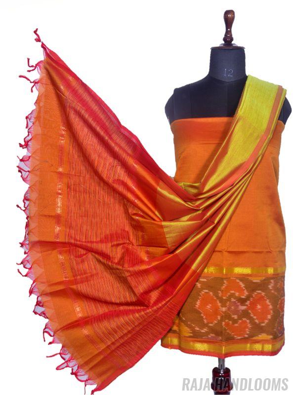 Capture the essence of tradition and elegance with this 3-piece Pochampally Ikat silk cotton dress material—a must-have bestseller for any collection!