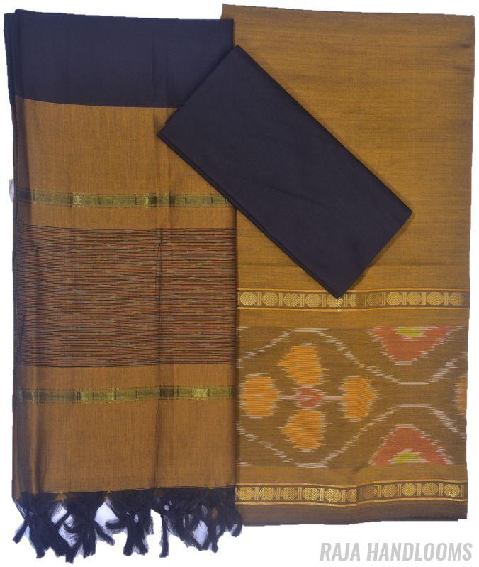 Capture the essence of tradition and elegance with this 3-piece Pochampally Ikat silk cotton dress material—a must-have bestseller for any collection!