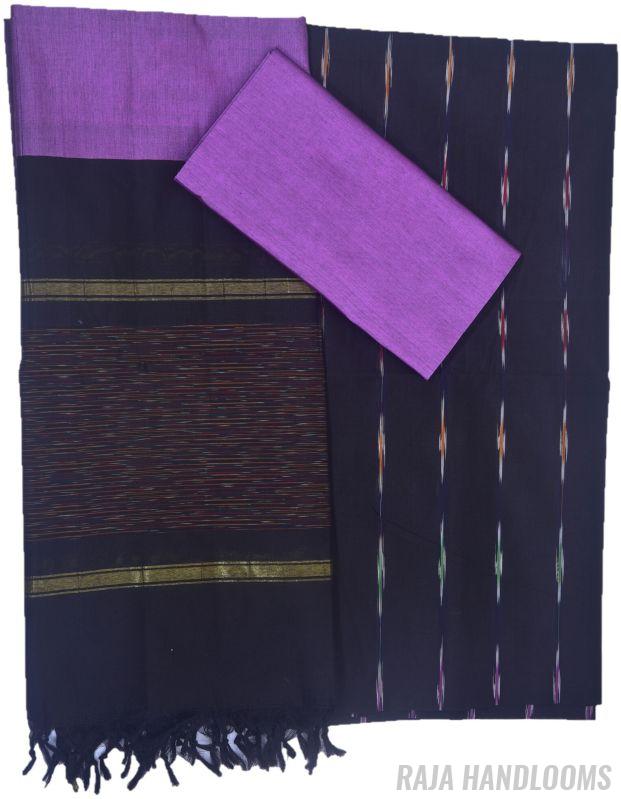 3PC Pochampally Ikat / Ikkat Handloom Cotton Silk Unstitched Dress Material Set for Women - SW002