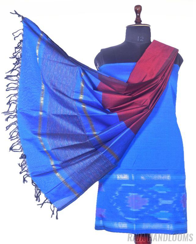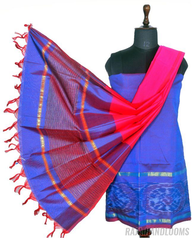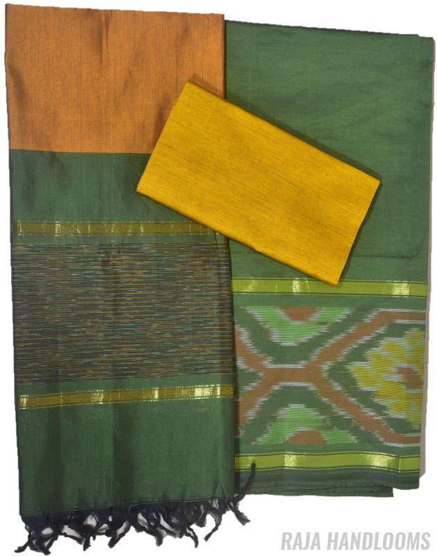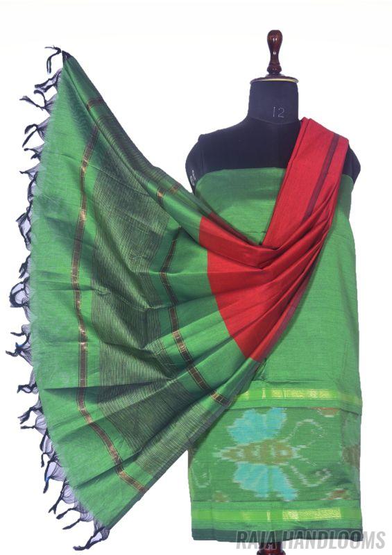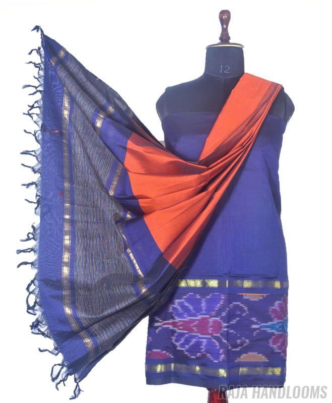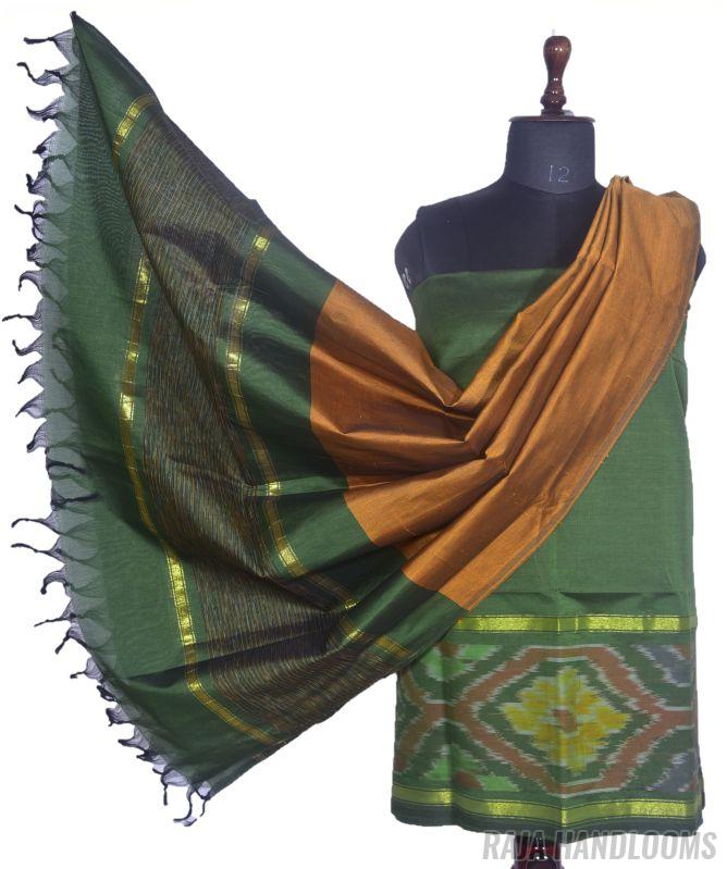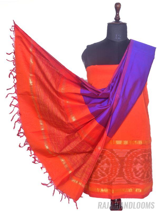 Capture the essence of tradition and elegance with this 3-piece Pochampally Ikat silk cotton dress material—a must-have bestseller for any collection!