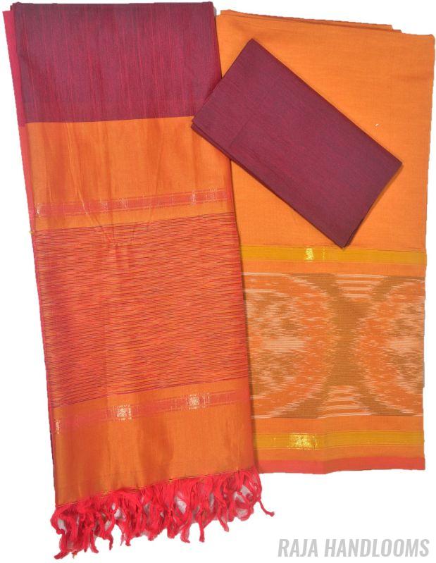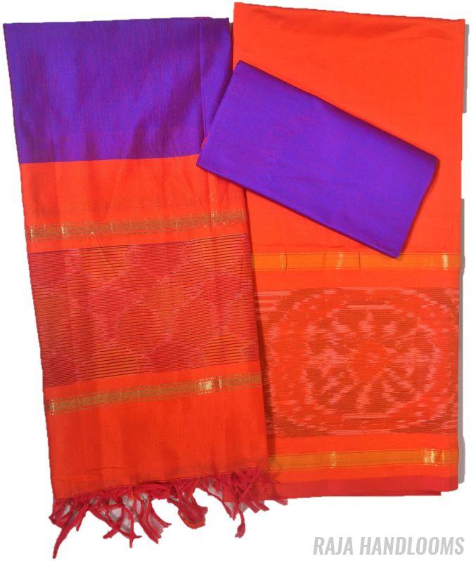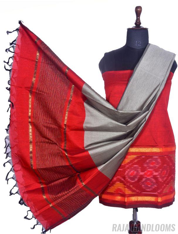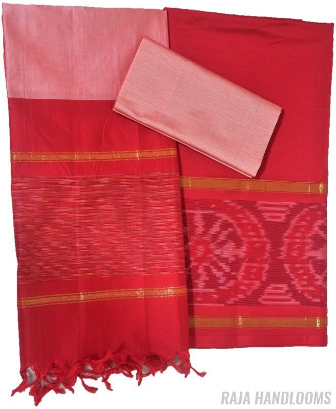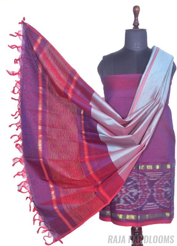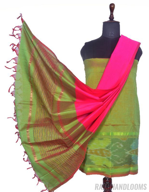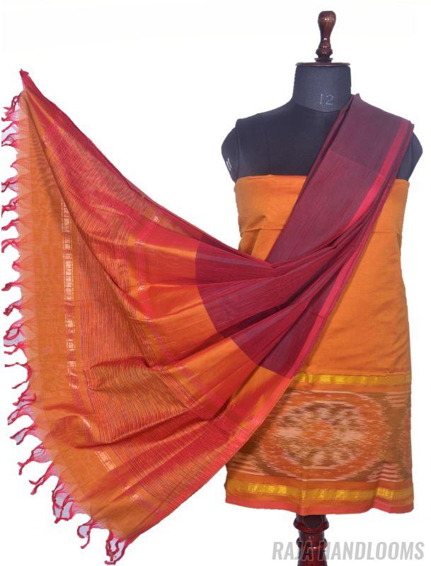 Capture the essence of tradition and elegance with this 3-piece Pochampally Ikat silk cotton dress material—a must-have bestseller for any collection!