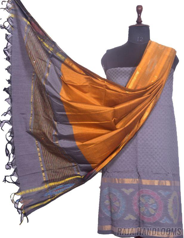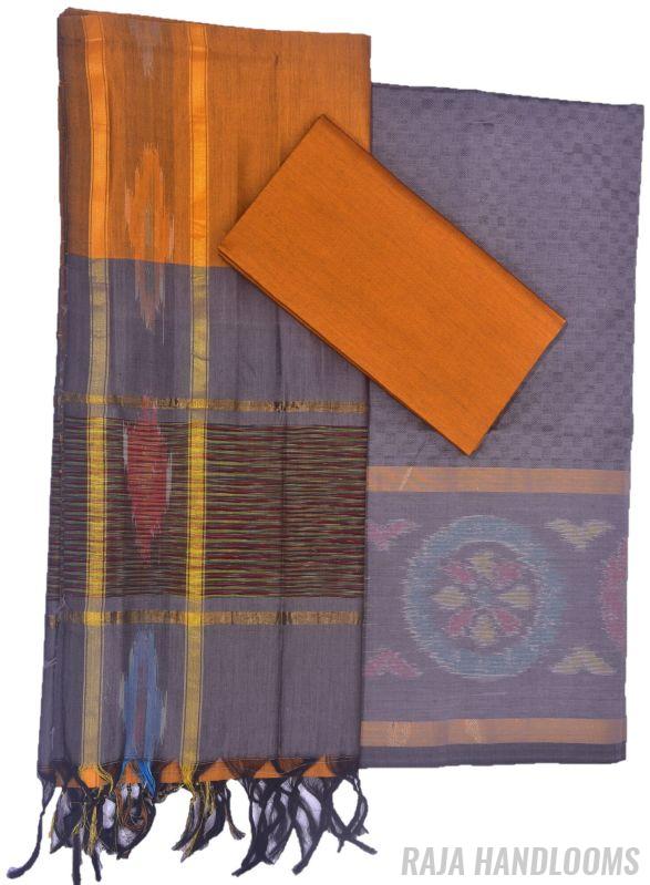 3PC Pochampally Ikat / Ikkat Handloom Cotton Silk Unstitched Dress Material Set for Women - AL001