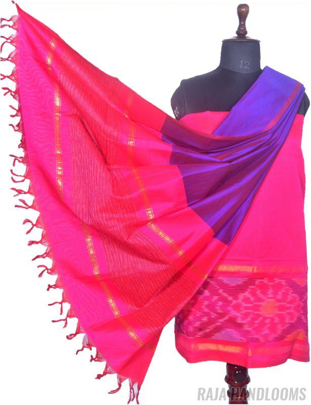 3PC Pochampally Ikat / Ikkat Handloom Cotton Silk Unstitched Dress Material Set for Women - DA003
