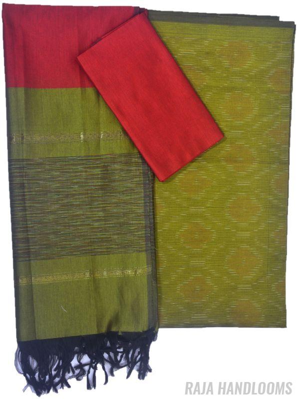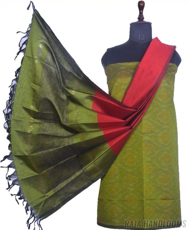 3PC Pochampally Ikat / Ikkat Handloom Cotton Silk Unstitched Dress Material Set for Women - MA003