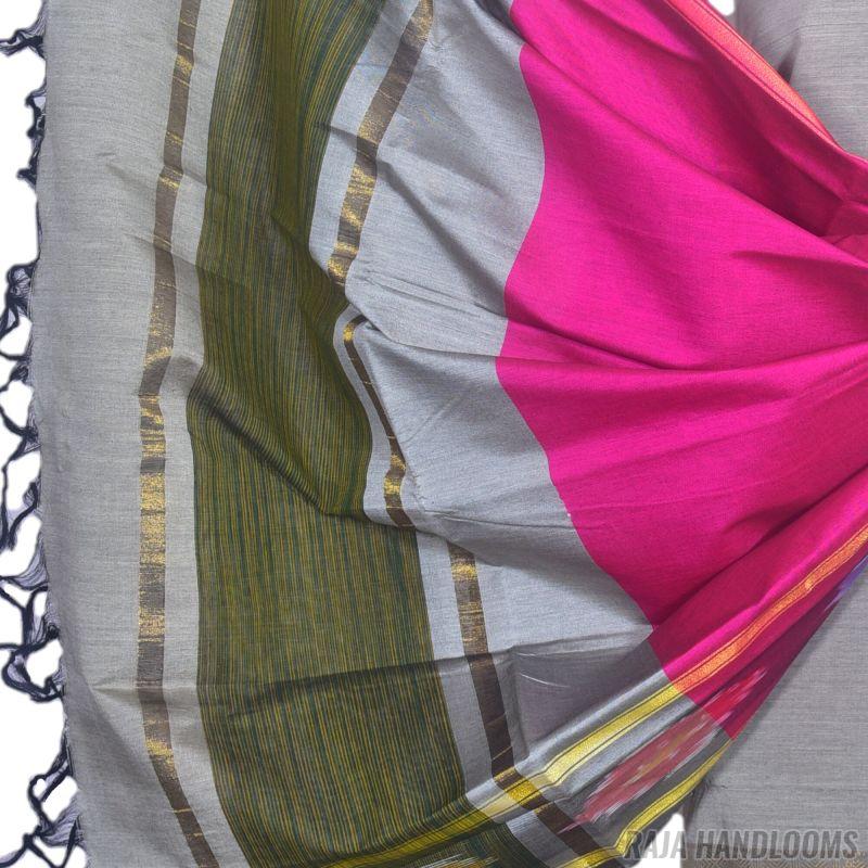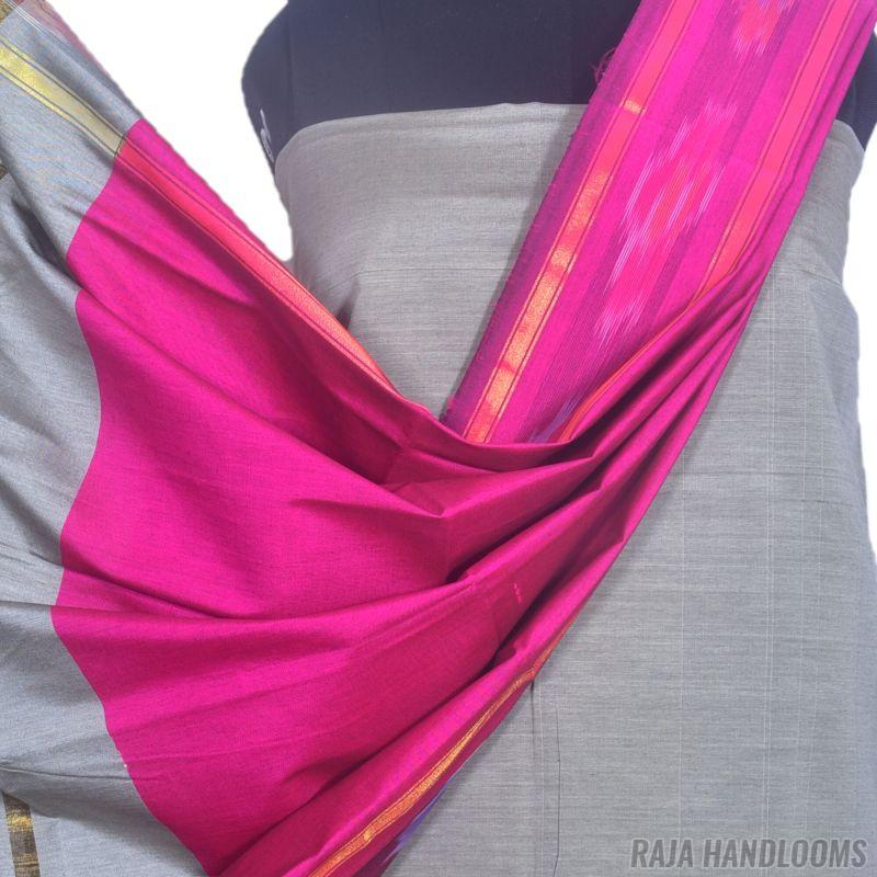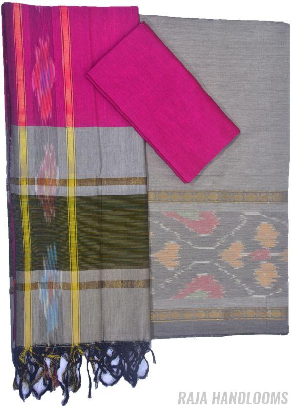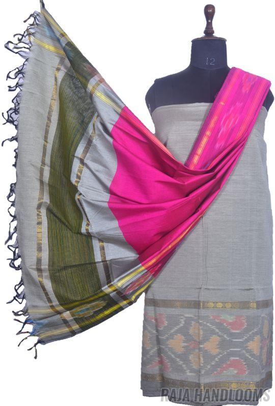 3PC Pochampally Ikat / Ikkat Handloom Cotton Silk Unstitched Dress Material Set for Women - PE003